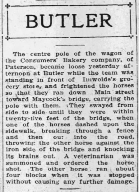This 1914 account of an unfortunate incident involving spooked horses offers a clue.